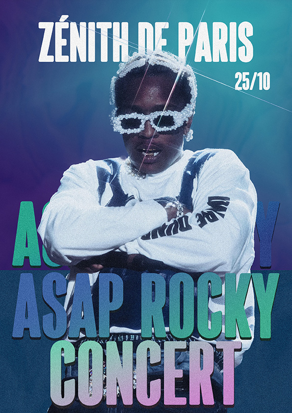 J’ai réalisé cette affiche d’A$AP Rocky sur Photoshop en m’inspirant de son univers visuel à la fois mode et urbain